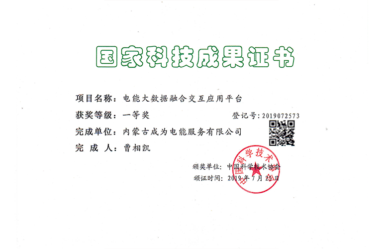 國家科技成果證書